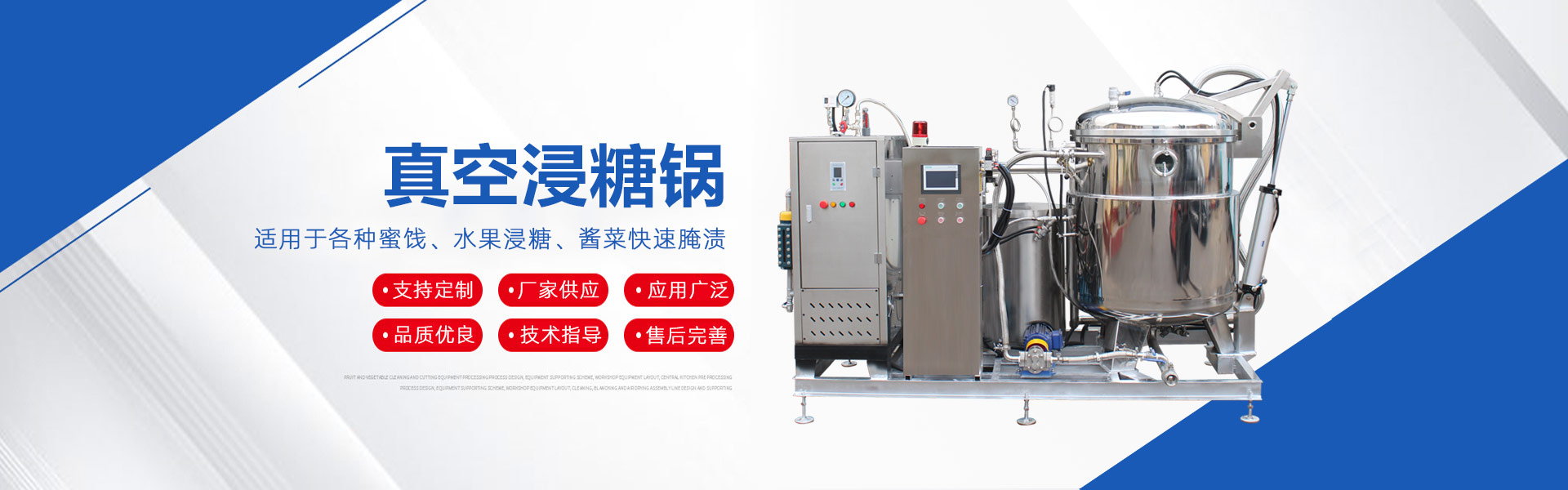 多年來服務的客戶涵蓋了焙烤餡料炒制業、肉制品熟食加工業、調味品業、糖果業、蔬菜玉米加工業、酒店用品及快餐食品等加工業,提供加熱蒸煮炒制、廚房配餐、滅菌消毒等系列設備。我公司擁有機械制造、食品工藝、工程安裝等各類人才,打造一個完善的服務團隊......